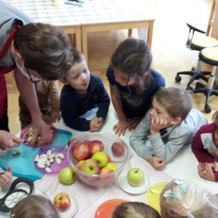 Die Jause und auch das Mittagessen bekommen die Kinder aus der hauseigenen Küche serviert.