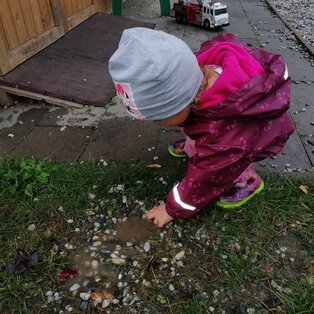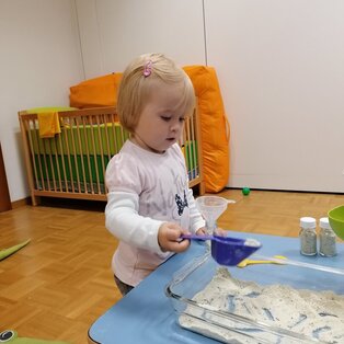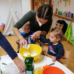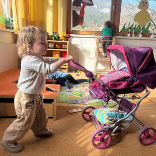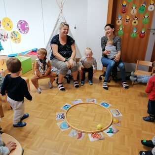 In der Krabbelgruppe werden die Kinder im Alter von 1-3 Jahren von einer Elementarpädagogin und zwei Kleinkinderzieherinnen umsorgt. Die Zwergengruppe bietet Platz für 15 Kleinkinder.