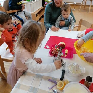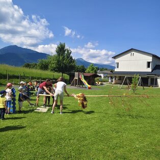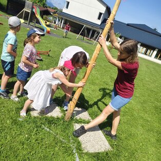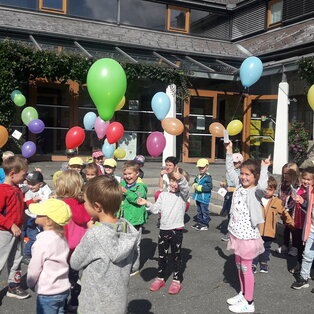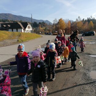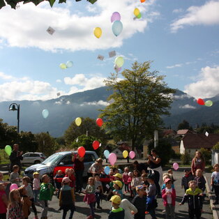 Projekte, Feste und Ausflüge machen den Kindergartenalltag immer wieder spannend und abwechslungsreich. Viele Feste im Jahreskreislauf werden gemeinsam mit den Kindern und Eltern gefeiert. Im November findet unser traditionelles Laternenfest statt, bei dem uns immer der "Heilige Martin" mit seinem Norikerpferd besucht und gemeinsam mit uns in der Kirche feiert. Im Winter fahren wir mit unseren Kindern zum Schikurs auf das Nassfeld. Der Abschluss des Kindergartenjahres und die Verabschiedung der Vorschulkinder findet immer bei einem großen Sommerfest im Juni gemeinsam mit den Eltern statt.
