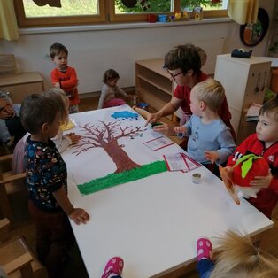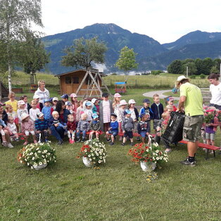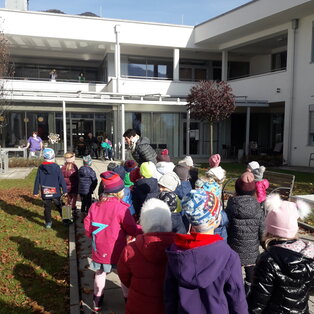 In unsere Bildungsarbeit fließen der bundesländerübergreifende Bildungsrahmenplan, die Wertebildung und auch die Sprachbildung mit ein. Das gruppenübergreifende Arbeiten ermöglicht uns die familiären und sozialen Kompetenzen zu stärken und auch größere Projekte zu erarbeiten. Der Austausch mit anderen Institutionen und heimischen Betrieben ist uns bei unserer Bildungsarbeit ebenfalls sehr wichtig. Daher besucht der Kindergarten beispielsweise jeden zweiten Monat das Pflegeheim und die Tagestätte in der Gemeinde St. Stefan. Hier wird gemeinsam mit den Pflegeheimbewohnern gesungen, gespielt, gemalt und gelacht.