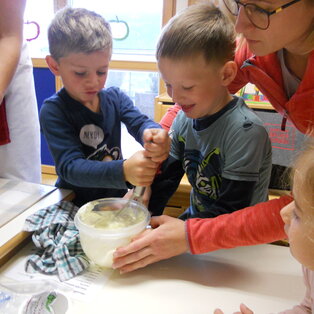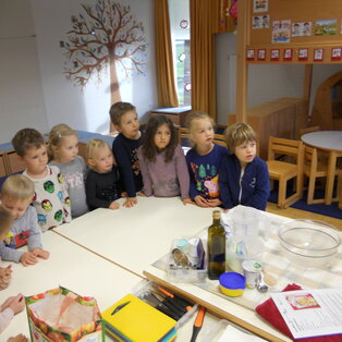 Die Kinder im letzten Kindergartenjahr dürfen 3x wöchentlich die Vorschulerziehung genießen. Mittels einem ausgearbeiteten Entwicklungsverlaufsbogen werden sie bestmöglich auf den Schuleintritt vorbereitet. Das übergreifende Arbeiten mit der Volkschule in unserem Bildungszentrum hat sich in den letzten Jahren sehr bewährt. Einmal im Monat besuchen unsere Vorschulkinder die Volksschule und erleben dabei den Unterricht mit den LehrerInnen und SchülerInnen. Das "Naturwissenschaftliche Arbeiten" (Forschen) fließt ebenfalls in die wöchentliche Vorschularbeit ein.