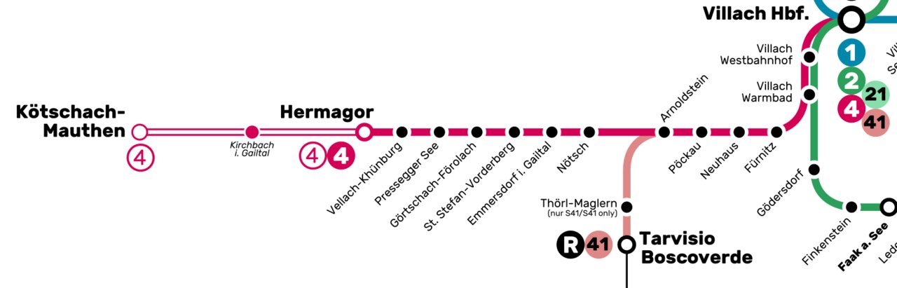 Die Gemeinde verfügt über einen leistungsstarken S-Bahn-Anschluss an der elektrifizierten Gailtalbahn. So ist der Villacher Hauptbahnhof in 40 Minuten und Hermagor in 16 Minuten bequem erreichbar. Die Linie S4 verkehrt dabei werktags im Stundentakt und am Wochenende alle zwei Stunden. An der Bahnstation stehen Ihnen Parkflächen sowie überdachte Moped- und Fahrradstellplätze zur Verfügung.