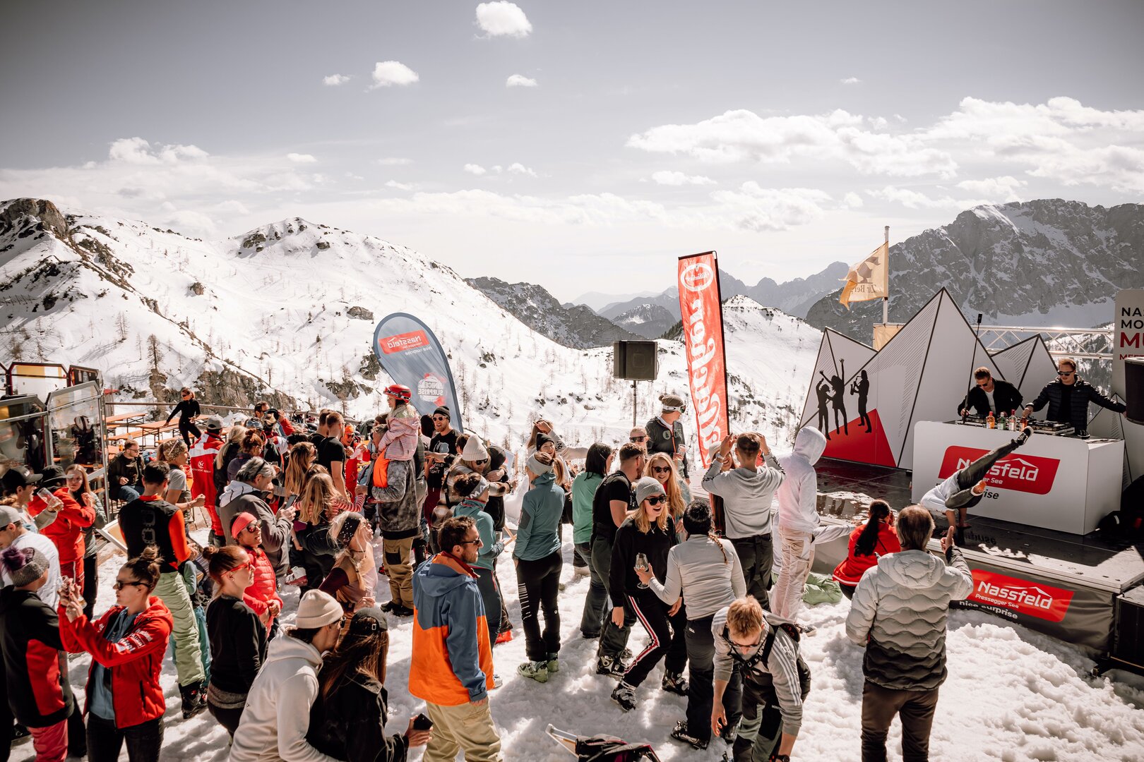 Mit dabei sind unter anderem die Schlanitzer Alm, Tressdorfer Alm, Ederhof in der Schlanitzen, Zum Alois, Restaurant Nivis, Watschiger Alm, WU-Bar, Kofelalm, Kabrio sowie die Berghex. Jede Location bringt ihren eigenen Stil, Sound und kulinarischen Charakter ein – gemeinsam machen sie das Nassfeld zur größten Sonnenterrasse der Alpen.