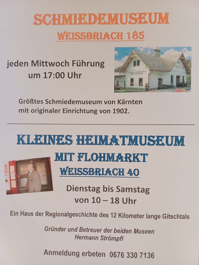 Öffnungszeiten Schmiedemuseum & kleines Heimatmuseum in Weissbriach